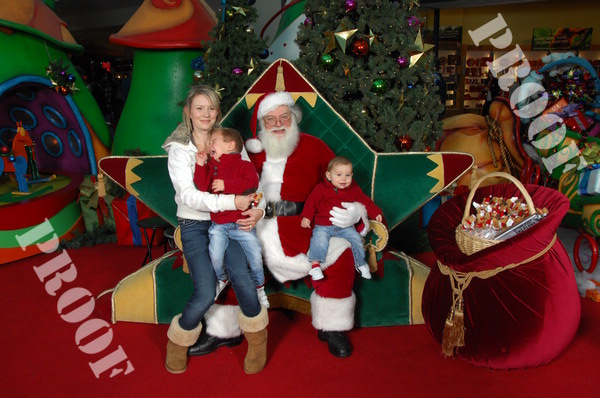 All that matters is that we beat the line ups! I was never really into getting Christmas photo's with Santa done-and I think it was because of the line-ups and I couldn't be bothered to stand in a 3 hour line up with my child just so that they could get their picture taken with Santa! Now knowing he comes in November...well it's a whole new ball game as well as a new family tradition. Where's Kev you ask? Well he was trying to make the kids smile and I know he was thinking the whole time "let's just get this done and over with already." Photo's with Santa isn't for the kids...it's for me. So one day I can look back and reminisce on the day I dragged the family to the mall with the boys in their matching outfits just to get a pictures with Santa to say that "we did it." One day they'll thank me for it! I hope!